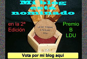 Mi blog está nominado junto con Viaje en Globo a la Luna de Maga DeLin y Dark Light de Judith Ruiz, a los premios que Luis Rodriguez, administrador de Letras Digital Uruguay, creó con la finalidad de dar difusión al trabajo de los distintos bloggeros. De modo que el fin no es sólo ganar sino divertirse y conocer otros blogs interesantes. Se difunden y nominan blogs uruguayos y extranjeros, respectivamente. Agradezco a Luis que haya tenido en cuenta mi blog y sobre todo me pone muy contenta estar nominada junto con dos compañeras de letras y lecturas que aprecio mucho. Entonces, si quieren votar por mí o por alguno de los blogs nominados sólo tiene que clickear en el banner y dejar su voto, al blog elegido, en las barras laterales.