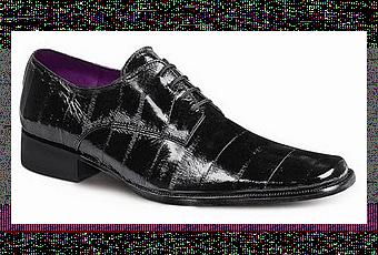 Con un inconfundible estilo dandy, Schatz reinventa la elegancia con un osado diseño de piel de anguila, con forro de piel color morado, plantilla de piel y suela de cuero.