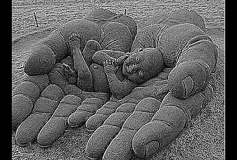 Y en la cuna colgué tres besitos,