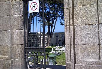 Decido entrar un momento, pasar por la tumba de la hermana de Picasso, pero la señora me llama con insistencia y evidentes ganas de charlar, allí enmedio. Le calculo unos 50 años, es delgada y bajita, con camiseta veraniega a rayas rojas y blancas y un sencillo colgante de oro de la Virgen del Pilar (pilar incluido) en miniatura, por lo que presupongo -confirmo después- que se llama Pilar. En vez del pasillo de tránsito, de forma respetuosa, Pilar se va moviendo hasta que nos quedamos plantadas en la tierra, en el centro de ese huerto salvaje (pisando tumbas), a los pies de una simple losa de mármol con letras plateadas, relimpia, centelleante, que contrasta con la que tiene al lado, de granito gris y que empieza a hundirse por una esquina.