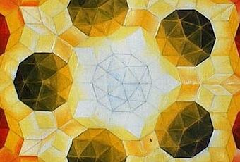 "Oil painting of Roger Penrose 5-fold tile configuration" (Urs Schmid, 1995)