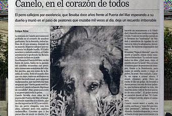 Más humano que cualquier perro, más perro que cualquier listo, Canelo gobernó la Avenida principal de Cádiz durante varias legislaturas, esperando a su dueñoa la puerta del Hospital, alimentado por el cariño general, antes de morir atropellado. Canelo es el único perro andaluz, que se sepa, que posee una calle a su nombre en una capital de provincia. Hay otros animales condecorados por el olvido, pero tienen nombre y apellidos. Canelo protagonizó, incluso, varios episodios de primera plana como el indulto solicitado por los ecologistas y concedido por el edil popular gaditano José Blas Fernández, y el papel estelar en un documental de la BBC, ahí es nada, que envió a un reportero a entrevistar a las personas y los perros de Cádiz vinculados con tal celebridad callejera. Ahí va un enlace con un artículo reciente sobre Canelohttp://www.lavozdigital.es/cadiz/v/20110121/cadiz/canelo-resucita-social-20110121.htmlLa periodista de La Voz Pilar Solís se hace eco de la creación de un espacio de tributo y recuerdo a Canelo, que ya tiene más de trescientos seguidores en el caralibro. Y arriba, el artículo aparecido tras su muerte. Canelo Forever.