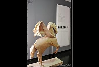 La segunda planta de la exposición La Magia del Papel, se ha consagrado a mostrar la obra de Éric Joisel. Dos meses antes de morir, en 2010, Joisel condujo un coche alquilado desde París a la capital aragonesa para participar como invitado de honor en una de las tradicionales reuniones del Grupo Zaragozano de Papiroflexia. El coche estaba repleto de trabajos para el futuro Museo del Origami, idea que le entusiasmaba. Con esos fondos, y con otros aportados por su familia, se ha organizado una amplia antológica de un creador al que en Francia consideraban “el Rodin del origami”. Verdaderamente impresionante.