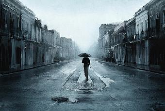 Conmocionado por su pérdida, recorría la calle sin notar que andaba, confundiendo sus propias lágrimas con la lluvia que caía, mezclándose. Neblina de tristeza en toda la ciudad.