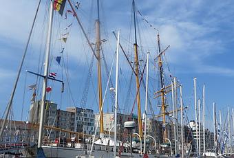 Este fin de semana se celebraba en el puerto de Ostende una feria de buques veleros. Lo que choca al principio es una enorme bandera española: