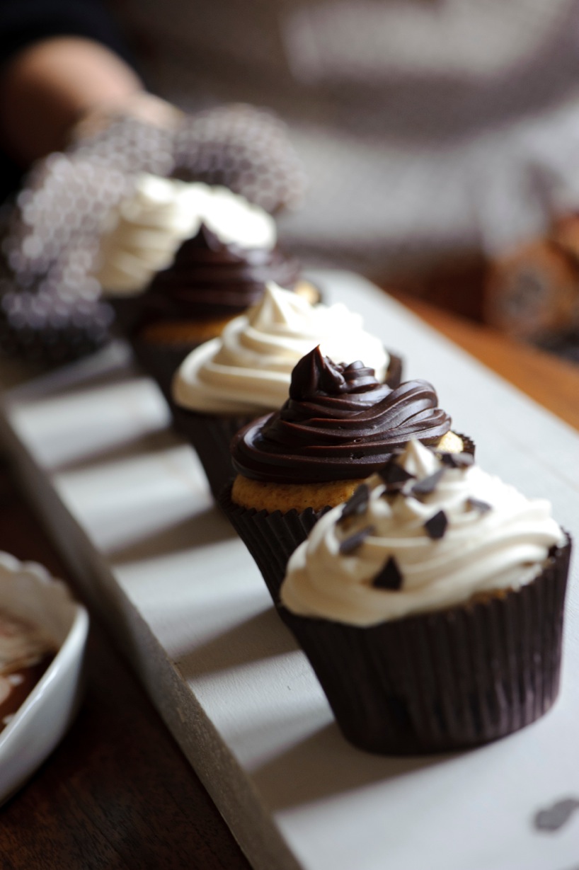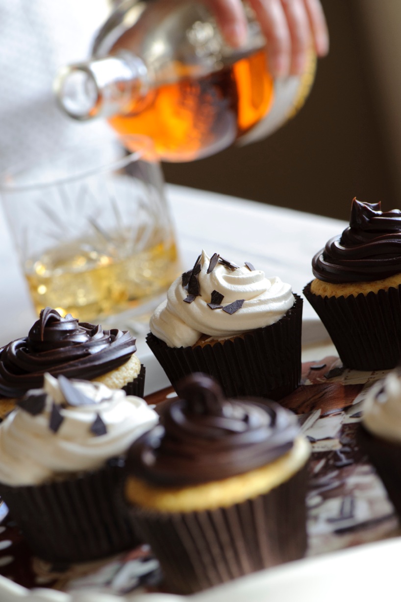 Hoy he recibido un mail de una de esas tiendas virtuales de ofertas de ocio, outlets y demás cuyo mensaje era "Encuentra tu tipo de padre ¿en que categoría encaja el tuyo?" . Y se ven unos dibujitos de señores con su etiquetita : el deportista, ese va en bici, el conservador, ese lleva traje, el gourmet vestido de cocinero, el sobreprotector, ese no sé de que va, pero tiene una cara cara de sorprendido el pobre hombre...bueno pues así hay unos cuantos y se supone que eligiendo el tipo de padre que te ha tocado en suerte te muestran una serie de opciones para que elijas el regalo ideal, para ese día tan señalado (no sé ni porque ni quien lo señaló) llamado El Día Del Padre. No he clikado aún, pero me muero de curiosidad por saber que se le puede regalar a un padre sorprendido, o sobreprotector como lo llaman ellos.Yo por mi parte os propongo estos cupcakes que van con casi todos los tipos de padres y sino seguro que van con las madres que suelen acompañarles y si ni por esa, seguro que van con el hijo o el vecino o con el hijo del vecino, sean estos del tipo que sean, quienes además también se merecen un día en el calendario ¿ no ? Así pues os dejo con la receta de cupcakes de chocolate blanco y chocolate negro con un toque de whisky que tanto valen para un Día especial como para alegrar un día, uno con d pequeñita, uno como tantos otros, que tan valiosos son unos como los otros. Cupcakes de vainilla borrachos con ganache al whisky y crema de Bailey's sin Bailey'sIngredientes para los cupcakes