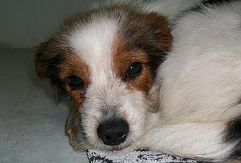 Este pequeñín es Panchito, le ví por primera vez el jueves cuando paseaba a mis perras, estaba en un estado lamentable, sucísimo y temeroso, en cuanto nos vió se fue con el rabito entre las patas. Cuando volví a verle al día siguiente no me lo pensé, le cogí en brazos sin ningún problema y le llevé a casa para bañarle y desparasitarle, el pobre estaba totalmente desnutrido y atemorizado, aunque es muy bueno y seguro que cuando se recupere será super cariñoso. Una vez limpio ha resultado ser un perrito precioso como podeis ver en las fotos, debe tener menos de 1 año, es muy chiquitín mide unos 30cms a la cruz y pesa unos 3 kilitos (aunque tiene que recuperarse), del tiempo que llevará sin comer apenas pudo dar dos bocados al paté antes de agradecermelo con unos timidos movimientos de rabo y acostarse a descansar.