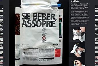 ...Acelera, acelera! Esto no es precisamente lo que ha ocurrido esta tarde. Y es que he presenciado como unos 7 coches se han quedado atascados en un calle sin salida, la cual estaba cortada por obras. Ha sido curioso, porque la gente ha empezado a salir de los coches para ver qué ocurría, y la única solución para acabar con el problema ha sido que todo el mundo diera marcha atrás hasta encontrar una intersección. Parecía eso una conga automovilística a la inversa! XDAsí que, me he inspirado y he dicho "Ah! Hoy la cosa va de hábitos de conducción." Pero no voy a hablar aquí de cómo se conduce (pues buena soy yo para eso jaja), sino que os voy a mostrar dos acciones muy creativas que están relacionadas con este tema. If you drink, blow (Si has bebido, sopla)Esta acción forma parte de una campaña de concienciación sobre los peligros de mezclar alcohol y conducción. Para ello se incluyó un alcoholímetro de verdad dentro de la revista Quatro Rodas. Así es cómo funciona: una persona sopla por la boquilla de esta bolsa, y a través de una serie de reacciones químicas, muestra si el usuario puede o no coger el coche. Es una de las acciones de marketing directo más útiles para el consumidor que he visto en los últimos meses, a que sí?