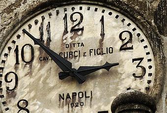 El viejo reloj del campanario de Capri, Italia, marca el paso del tiempo