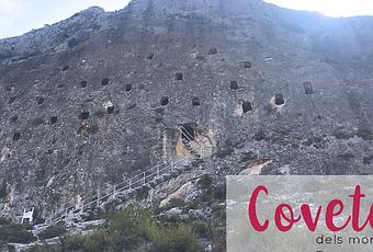 Desde allí bajamos por el caminito del barranco hasta cruzar a la montaña de enfrente donde se encuentran les covetes dels moros, un grupo de cuevas-ventanas, o cuevas artificiales con orificios en forma de ventana, colgadas a mitad de un acantilado rocoso. Situadas a sólo 300 m. al norte del núcleo urbano de Bocairent. Es el grupo más complejo y numeroso de toda la cabecera del río Clariano, donde hay otros pequeños grupos en los barrancos entre Bocairent, Ontinyent y Alfafara.