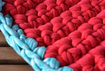 Borde: en una esquina del tejido hacemos un punto raso y tejemos (de derecha a izquierda) un punto bajo en cada punto de la vuelta anterior. En las 2 primeras esquinas tejemos 3 PB en cada una. En la tercera esquina, tejemos 10 PC, que uniremos con un punto bajo, y en la cuarta esquina hacemos 3 puntos bajos y unimos al primer punto que hemos tejido con un punto bajo.