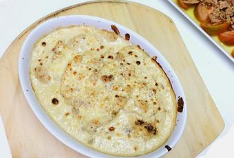 - Mientras rallamos el queso, echamos las pechugas con la salsa en un recipiente apto para el horno, cubrimos con el queso rallado y gratinamos hasta que se dore.