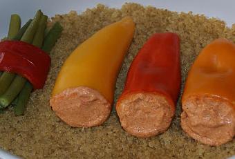 Los minipimientos no deben quedar muy cocinados para así aguantar firmemente la crema de tofu.
