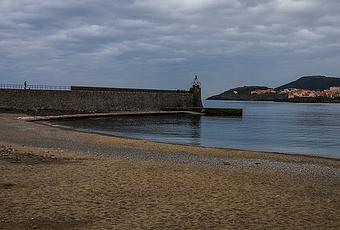 Entre el faro medieval y el faro actual de Colliure está la playa de San Vicente, amplia y con arena dorada.