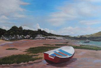 Liencres Beach, in Cantabria, Spain, is one of the most beautiful beaches in the world. It’s not only tropical, it’s much better, with a sea inlet, great sand dunes… besides, someone left this little boat there, to make the view more picturesque so it was a good chance for a painting.