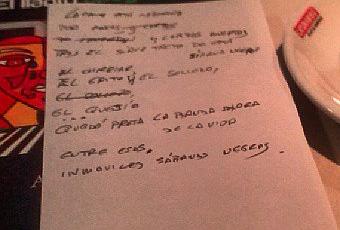 Hoy me fuí a tomar café a una cafeteria de mi barrio, una cafetería tematizada del cine, una cafetería con su rincón para leer, su estantería de libros de intercambio o para leer allí, un sitio tranquilo, con buena música y suavita para poder leer, escribir y tener charlas trascendentales, La Butaca Pues bien, entre sorbo y sorbo de un rico y amargo café, mientras ojeaba un poemario, El llanto apagado de Antonio Moya me dió por escribir en una servilleta, con un bolígrafo húmedo y sin capucha (como debe hacerse, como se hacía antes) un pequeño poema.