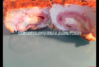 INGREDIENTES4 filetes de pechuga finos, 8 lonchas de jamón cocido, 6 lonchas de queso de fundir, una taza de harina, una taza de pan rallado, 2 cucharadas de mantequilla, tomillo, romero, 3 dientes de ajo picado fino, aceite de oliva, sal.
