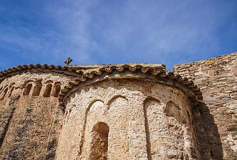 Los ábsides de Sant Julià de Coaner y una pared de la antigua rectoría.