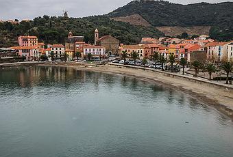 La playa de Port d'Avall vista desde al lado del castillo de Colliure. --- Collioure, France. [EXIF]