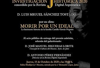 En esta primera edición de 2020, el jurado ha acordado por unanimidad conceder el premio al ensayo “MORIR POR UN IDEAL (La fascinante historia de la familia Castillo García-Negrete)”, editada por el Ayuntamiento de Castillo de Locubín (Jaén), cuyo autor es el investigador e historiador jiennense Luis Miguel Sánchez Tostado.