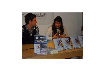 Hoy a las 12:30h en Bibliocafé, ha tenido lugar la presentación de ángeles desterrados de Anabel Botella, de la mano del maestro de ceremonias Sergio Rodriguez del Creador de sueños, hemos conocido ciertos detalles sobre la novela y su autora.Si bien Anabel confesó antes de el inicio de la presentación que estaba un pelín nerviosa, han valido sus tablas en el escenario y se ha mostrado segura y clara en sus explicaciones.Después de escucharla sólo tenía ganas de leer su novela.Además hemos contado con banda sonora y Javier Melián ha interpretado su canción, una preciosa balada que compuso después de leer la novela y que ha sido la música que se escucha en el booktrailer de la novela.
