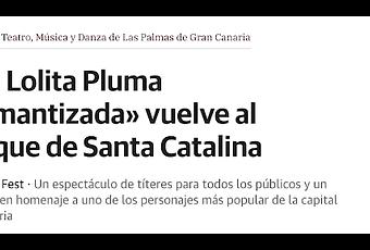 El Festival de Teatro, Música y Danza de Las Palmas de Gran Canaria (Temudas Fest) pondrá en escena el próximo domingo 28 la obra 'Lolita Pluma, reina del parque Santa Catalina', un espectáculo de títeres para todos los públicos con una duración de 50 minutos con el que la ciudad pretende despertar la memoria colectiva en torno a un personaje singular que hizo de Santa Catalina su casa.Lolita Pluma (Las Palmas de Gran Canaria, 1904-1987) fue en otro tiempo la estrella del entorno de Santa Catalina, epicentro de una ciudad abierta al puerto en un tiempo en el que los turistas comenzaban a ser fuente de recursos económicos para los canarios. Y es en el escenario principal de ese parque donde se desarrollarán dos funciones (10.30 y 12.30 horas) en torno a su lado más positivo. Porque «el recuerdo sobre ella es mucho más romántico que áspero». Y es que «no hemos reflejado la parte amarga y la soledad de un personaje viviendo casi en la calle. Hemos recogido de ella toda la parafernalia que hace para darse a conocer», en palabras del autor del texto de este teatro de títeres, Manu Medina.