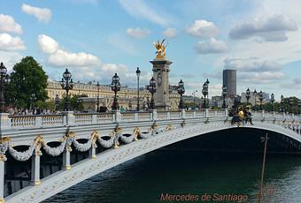 (Se trata de uno de los ejemplos más interesantes de las Bellas Artes de la Tercera República francesa, construido para) aliviar la densa circulación parisina, pero sobre todo por el proyecto de la Exposición universal de París. La primera piedra fue puesta por el Zar Nicolás II de Rusia el 7 de octubre de 1896, en presencia del presidente francés Félix Faure. En ese acto se celebraba la alianza franco–rusa, mantenida ya entre el Zar Alejandro III de Rusia, a quien el puente está dedicado, y el presidente Marie François Sadi Carnot. El puente fue inaugurado por Émile Loubet el 14 de abril de 1900, en conjunto con la Exposición Universal de París.2 3