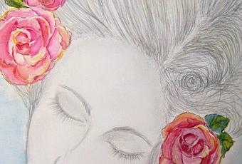 Con la técnica punta de plata o stilum, está realizado este dibujo y posteriormente las rosas iluminadas con acuarela.La punta de plata es igual que la mina de un lápiz que se introduce en un lapicero y se puede dibujar. El soporte ha de ser resistente, en este caso papel de caballo, al que se aplica una imprimación a la caseina. El papel debe estar sujeto firmemente a un tablero y sobre él se aplica esta preparación. Cuando seca se lija, y ya se puede comenzar el dibujo elegido, trabajado igual que si fuera lápiz pero el resultado es mucho más delicado y sutil.