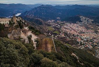 Foto hecha con el móvil desde la Cova del Santuari de Queralt. Abajo a la derecha la ciudad de Berga, a la izquierda el santuario, y detrás el pantano de La Baells.