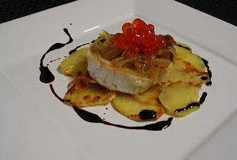 INGREDIENTES PARA 2 PERSONAS 2 rulos de queso de cabra.1 cebolla dulce.1 patata mediana.Alcaparras.Huevas de salmón.Aceite de Oliva Virgen Extra.Sal y pimienta negra.