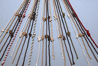 Un modelo de nudos quipu, representativo de muchos quipus del Perú anterior y posterior a la conquista. Crédito: Jon Chase / Harvard Staff