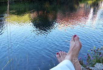 Aquel día, se sentó a la orilla del río con su pies descalzos no sin antes haber pisado la hierba sintiendo su humedad entre los dedos. El susurro del viento la llamaba, mientras la tarde se alejaba pletórica de belleza.