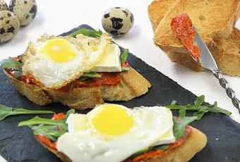 Puedes ver la receta pinchando aquí: tostas de sobrasada y huevo de codorniz.