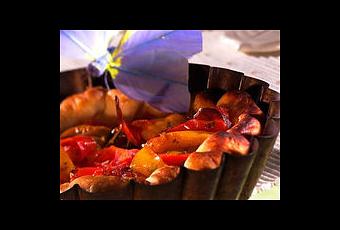 1 cebolla 1 bote de tomates pelados 1 cucharada de aceite de oliva 1 pasta de hojaldre Freír una cebolla en una sartén con aceite de oliva a fuego medio Añade los pimientos cortados en rectángulos Añadir los tomates pelados sin el jugo Cubrir y cocinar durante 20 mn a fuego medio Mientras se cocina, reducir y eliminar el agua Precalentar el horno a temperatura media Estirar la masa de hojaldre en un molde para pastel Verter la mezcla sobre la masa Servir caliente o frío |