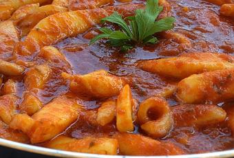 Ingredientes para 4 personas:1 kilo de sepia.3 dientes de ajo.1 guindilla.350 gr. de tomate triturado.Perejil.Sal y aceite de oliva.Elaboración:Limpiamos las sepias y las cortamos en tiras.En una cazuela con aceite ponemos a freír los dientes de ajo pelados y picados. También incorporamos la guindilla limpia de pepitas y troceada. Cuando el ajo comience a coger color, añadimos el tomate y dejamos que se sofría un poco.Seguidamente echamos la sepia, el perejil picado y una pizca de sal. Removemos bien todos los ingredientes para mezclar. Dejamos que reduzca un poco la salsa a fuego fuerte, y después tapamos y dejamos cocer durante una hora a fuego lento.Acompañado de arroz blanco queda un plato completo.