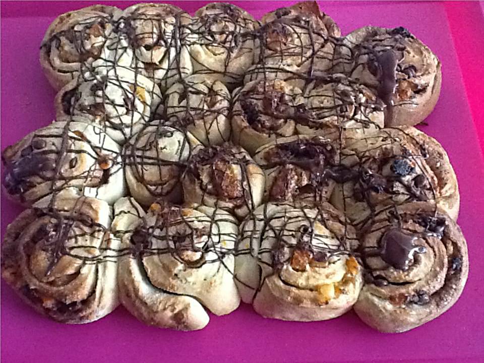 Yo he puesto los mismos ingredientes y además canela, naranja confitada y azúcar moreno y.... manjar de dioses como se suele decir, no hay más que ver las fotos ....no quedó ni las miguitas!