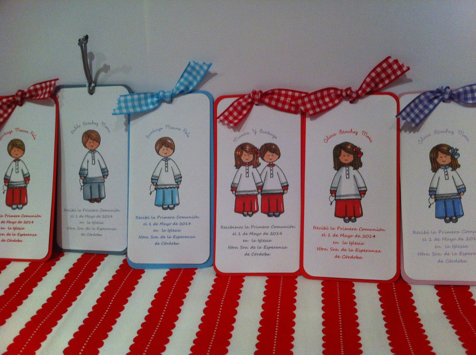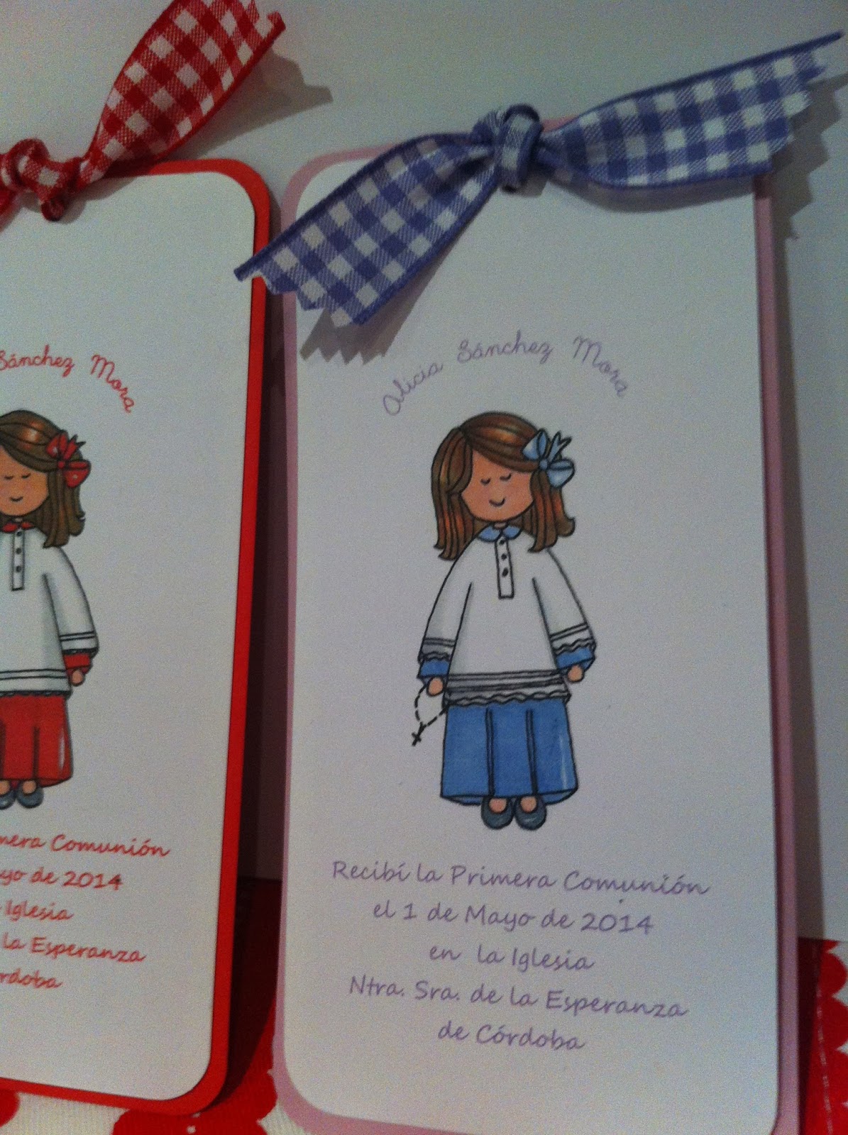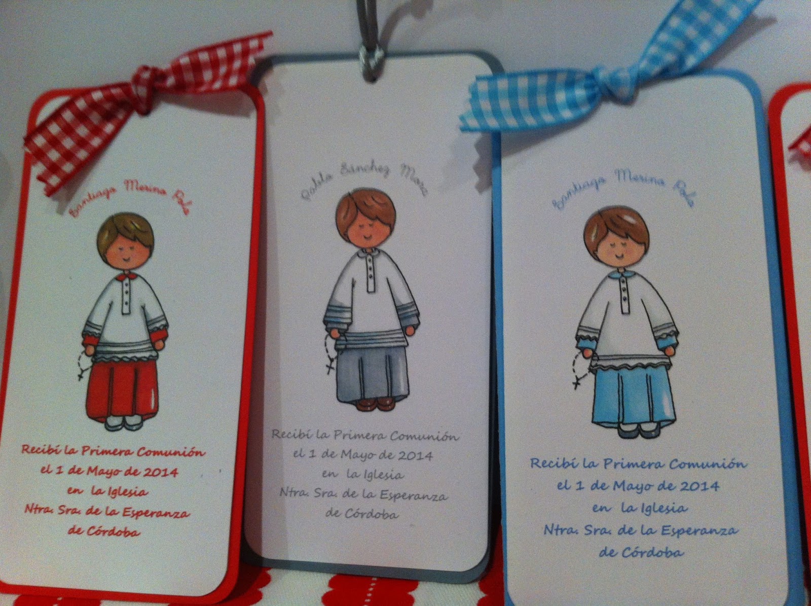 Hemos sacado los monaguillos con la tunica en rojo, gris y azul y asi poder decorar las estampas a juego con los lazos