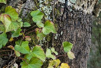 La hiedra parece querer proteger la parte desnuda de este alcornoque. --- Tapis - Maçanet de Cabrenys, Girona. [EXIF]