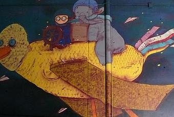 Una escena del mural de 100 metros que Mëgan ha pintado con más de 500 aerosoles