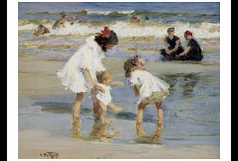 Llevo varios días intentando terminar una copia de un cuadro del gran Potthast, llamado de nombre Edward Henry, el cuadro se llama Niños jugando en la playa y aunque no lo llevo muy bien, estoy segura que te parecerá impresionista ((o por lo menos te impresiona ¿no? más o menos, recuerda que todavía lo llevo por la mitad)).Este gran pintor nació en el verano de 1857 en Ohio, más concretamente en Cincinnati de EE.UU. y debió sacar la gracia artística de su padre que era ebanista, pero se formó como grabador de litografías. Vino a Europa con 25 años a estudiar a Amberes con el maestro Charles Veriat lo suficiente para conocer la pincelada de Munich.