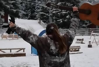 Hace un mes mi gran amigo Gregory me la acercó a Lyon-Francia. Cuando la vi se me cayó una lagrima: allí estaba igual que siempre… hecha mierda, re baqueteada, toda rajada y desafinada. Le cambié las cuerdas, la afiné y la limpié. Sigue baqueteada igual, es obvio que después de tantos años, tantos viajes y tantas guitarreadas a 5 grados le afectaron. Eso no impidió que el reencuentro fuera mágico.