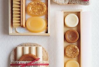 ¿Porque no una cesta tipo Body Shop con jabones? La mayoría de los ingredientes seguramente los puedes encontrar en tu despensa. Poner 1 taza de glicerina liquida y: