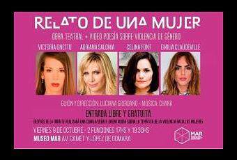 En el Museo de Arte Contemporáneo de la ciudad se realizaron dos funciones de la obra de teatro Relato de una Mujer, con un espacio para debate y reflexión acerca del fenómeno de la violencia de género. Las actrices Victoria Onetto, Adriana Salonia y Celina Font fueron presentadas por Emilia Claudeville, encarnando cada faceta del círculo que atraviesan las víctimas de violencia en sus etapas de romance, tensión y explosión.