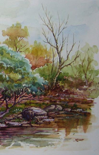 "Remanso" Detalle. AcuarelaSiguiendo esta serie de Temas Rurales y de Naturaleza traigo a esta entrada otro paisaje. Me apasionan estos lugares, "pequeños paraisos", donde la frondosidad de los árboles y la corriente lenta del agua nos acompañan produciendo un efecto de tranqulidad que nos relaja y nos hace olvidar el trasiego de la rutina diaria. En este nuevo "paso a paso" presento, sin ninguna pretensión magistral, un camino: el que yo he recorrido para realizar esta acuarela, con la inseguridad y las dudas que plantea esta técnica pero también con momentos gratificantes de sorpresa y descubrimiento si somos constantes en la dedicación.