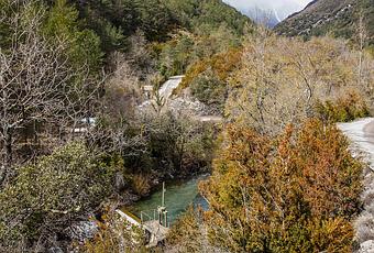 Una pequeña presa en el Bastareny desde donde se desvía agua por un canal hasta la central hidroeléctrica de Pendís, a las afueras de Bagà.