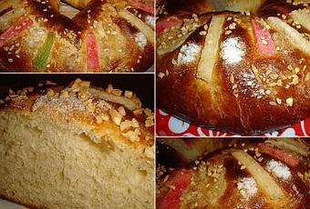 Pintarlo con huevo batido y decorar con fruta escarchada, almendras y azúcar.