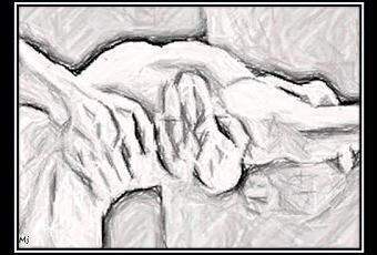 Caricias,sin levantar mi mano te siento,rozo con ternura tu piel,suave, delicadamente,mientras deslizo y perfilotus manos sobre mi cuerpo.En el papel todo es perfecto, ese tango, esa mirada, tu fuerza en un abrazo consentidolas lineas de tus dedos fuertes brazos que sujetan, mi alma.Así te siento mientras te dibujo.