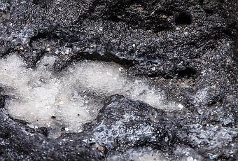 La preciadísima sal de charco de Lanzarote, y concretamente en este caso sal de espuma de ola, que se forma en los huecos de las rocas volcánicas por el agua que llega en las olas que rompen en ellas.