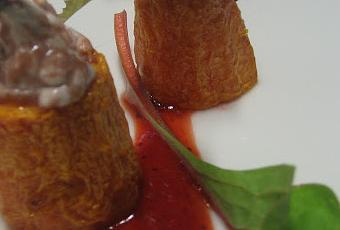 1 Cucharada de vinagre de Módena2 Cucharadas de Coulis de Fresas y unos 25 gr de Mascarpone.Aceite de Girasol, hoja de espinaca.