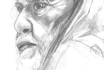 I came across a sale of photos of desert people and… here comes another one and there are some more waiting. In this case I liked the grumpy face of the man, frowning… besides, the hoods make it easier to draw heads, because painting hair is usually booooooring…